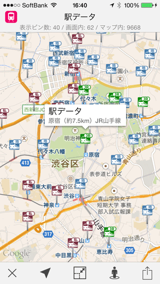 都心の足といえば鉄道ですね。日本の鉄道は時間に正確だから、到着時間をしっかり予定できるのが何よりありがたいもんです。経路検索では、乗り換え案内ソフトが便利なんですが、都心では地上のJR線から地下鉄線も多数あって、ときに次の移動に最適な最寄り駅がわからなくことがあります。こんなときに使えるのがこれ、「駅データ」マップです。