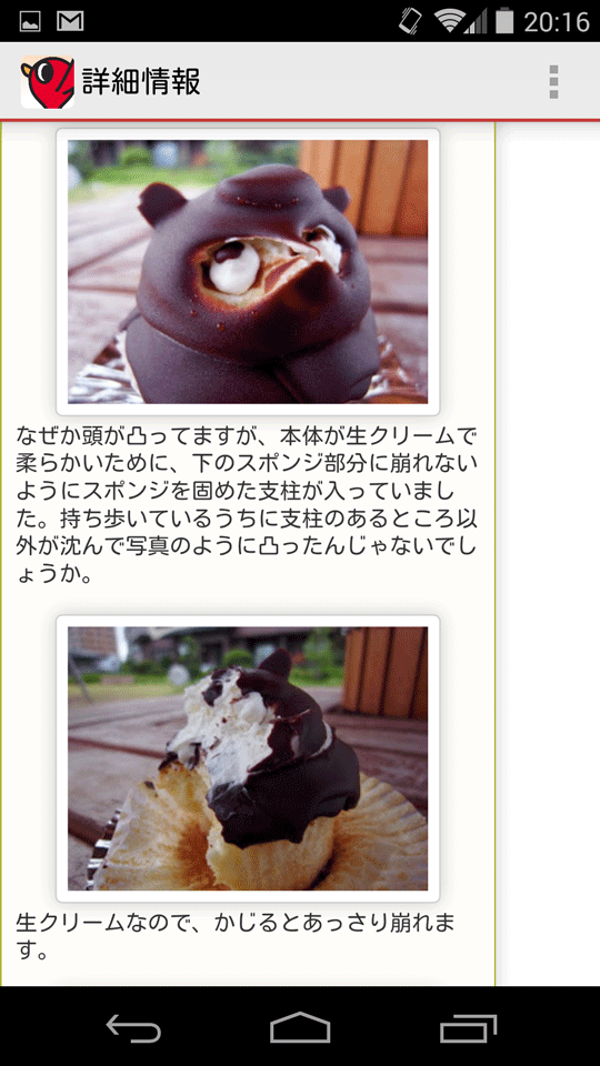 マップからブログの記事を表示したところ。ケーキの内部をしっかり解剖して紹介してくれてます!