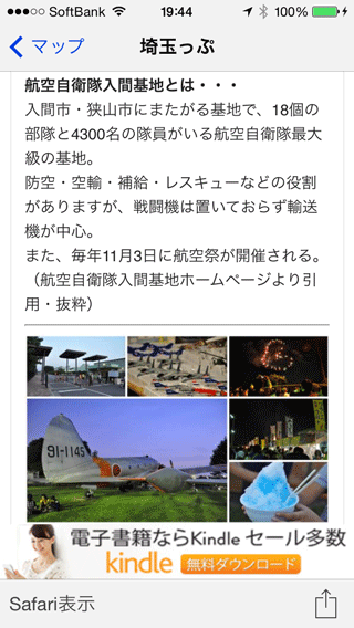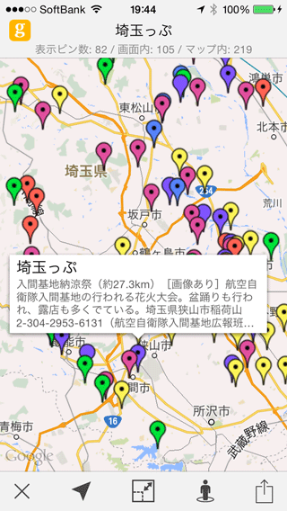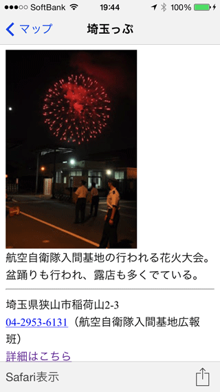 「埼玉っぷ」の記事を表示したところ。その地点に関する詳細なブログ記事を参照できます。