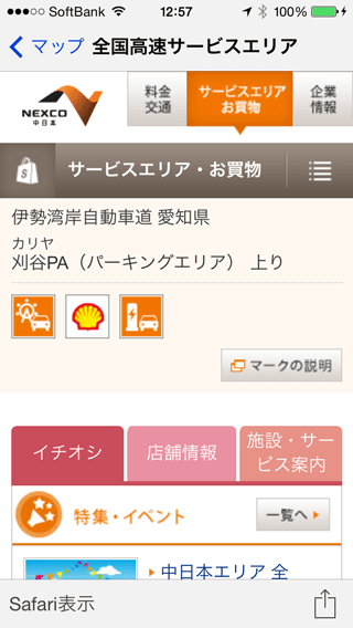 そんなサービスエリアの情報に素早くアクセスできるのがこのマップです。ピンの詳細ページでは、情報元である「ドラぷら」の情報ページをチェックできます。