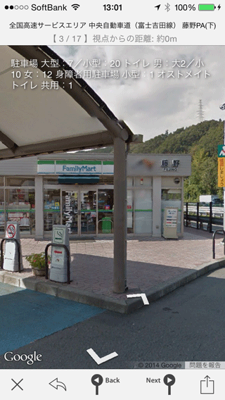 ストリートビューでサービスエリア内部をチェック! どこのコンビニが入っているかなんかも簡単チェックできちゃいますよ!