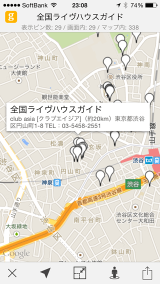 大規模なものから小規模なものまで、全国のライブハウスをマップにまとめています。ライブハウスって、けっこう裏路地とかわかりにくいところにあったりしますが、これで迷わず行けます!