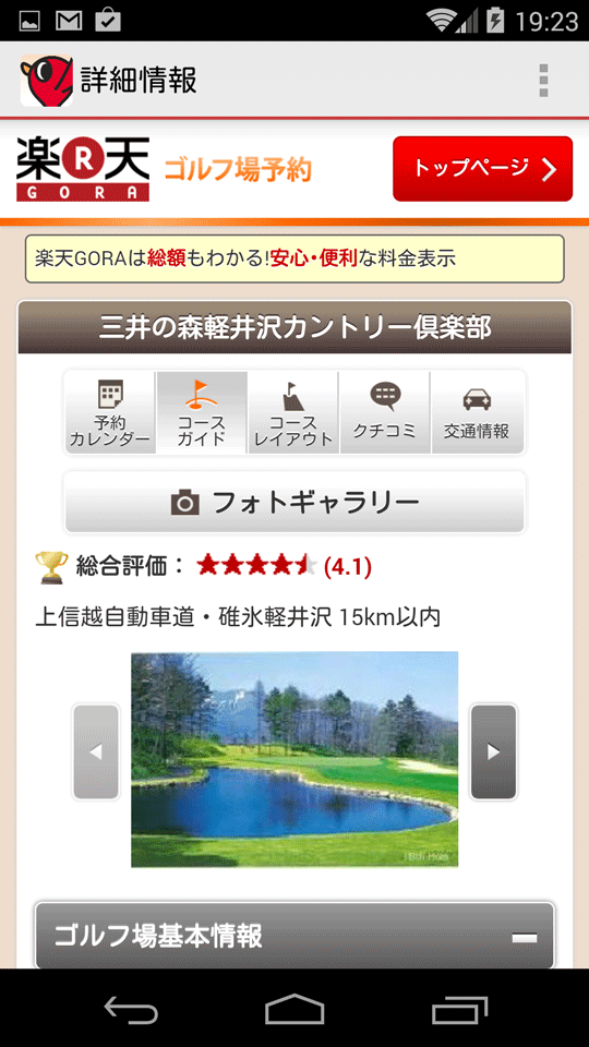ピンの詳細ページは、楽天ゴルフ場予約になっていて、料金や空き枠の確認、予約ができます。